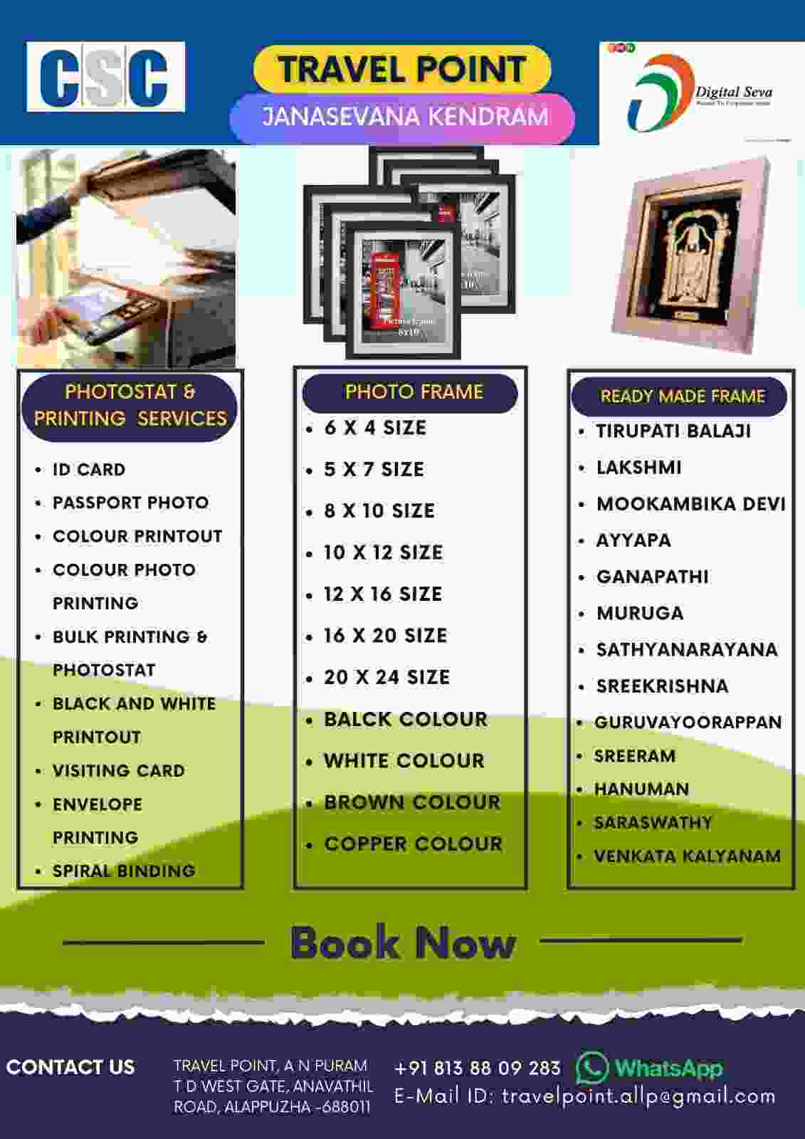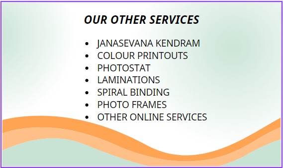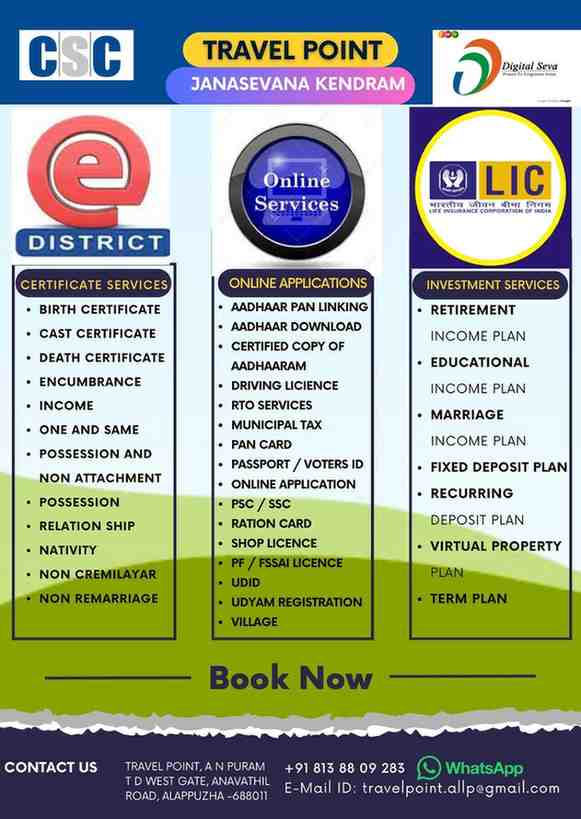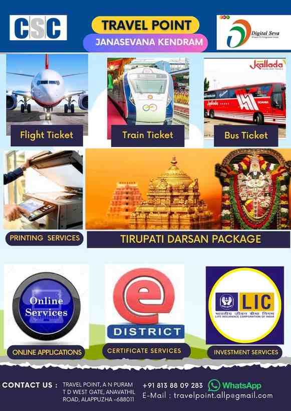 Akshaya/Janasevana Kendra, Tours & Travels, Online services, Travel Agency, Travel Agent, DTP & Photostat, Train Ticket Booking, Air Ticket Booking, Bus Ticket Booking, Aadhaar Services, Online Services