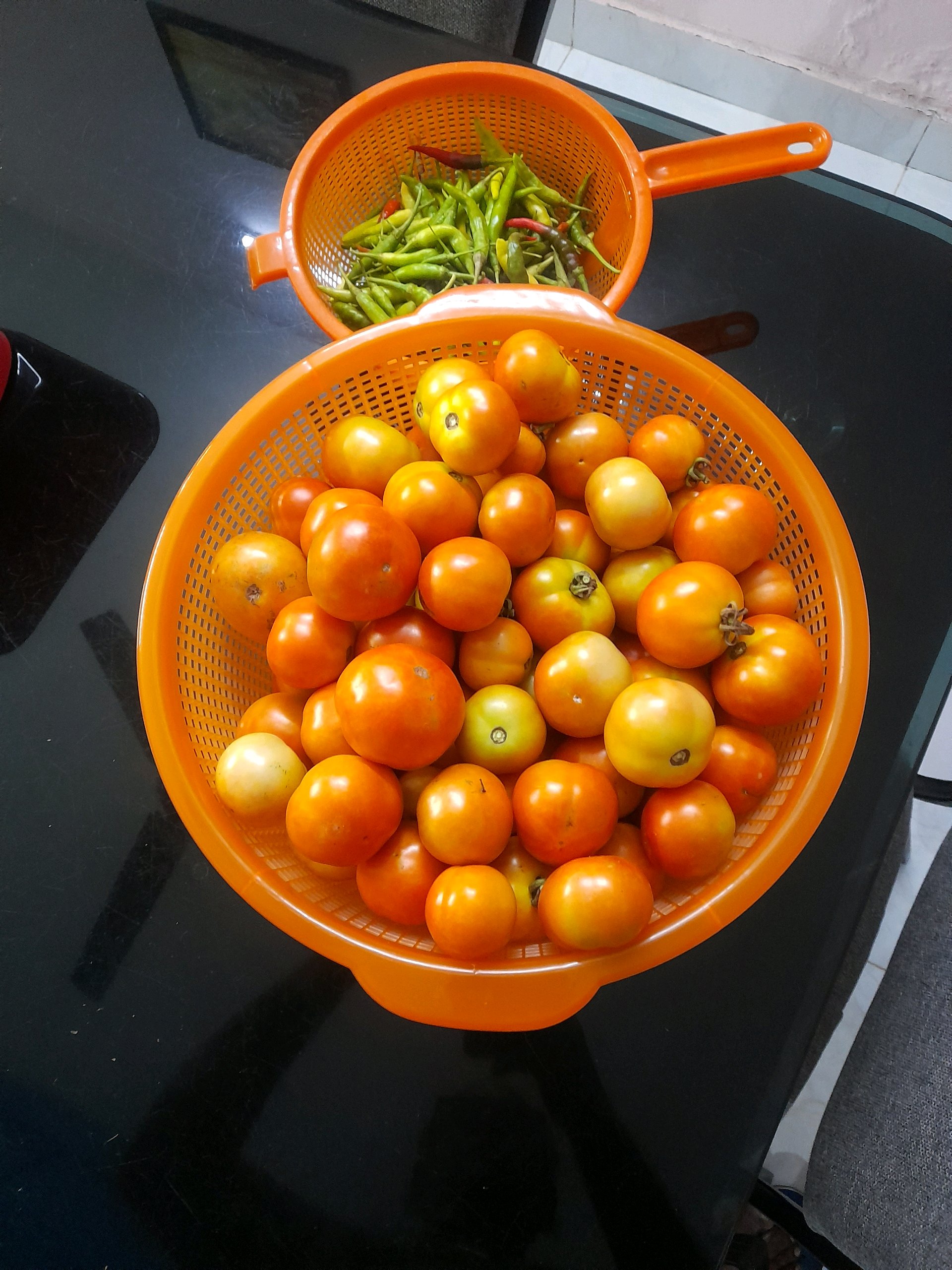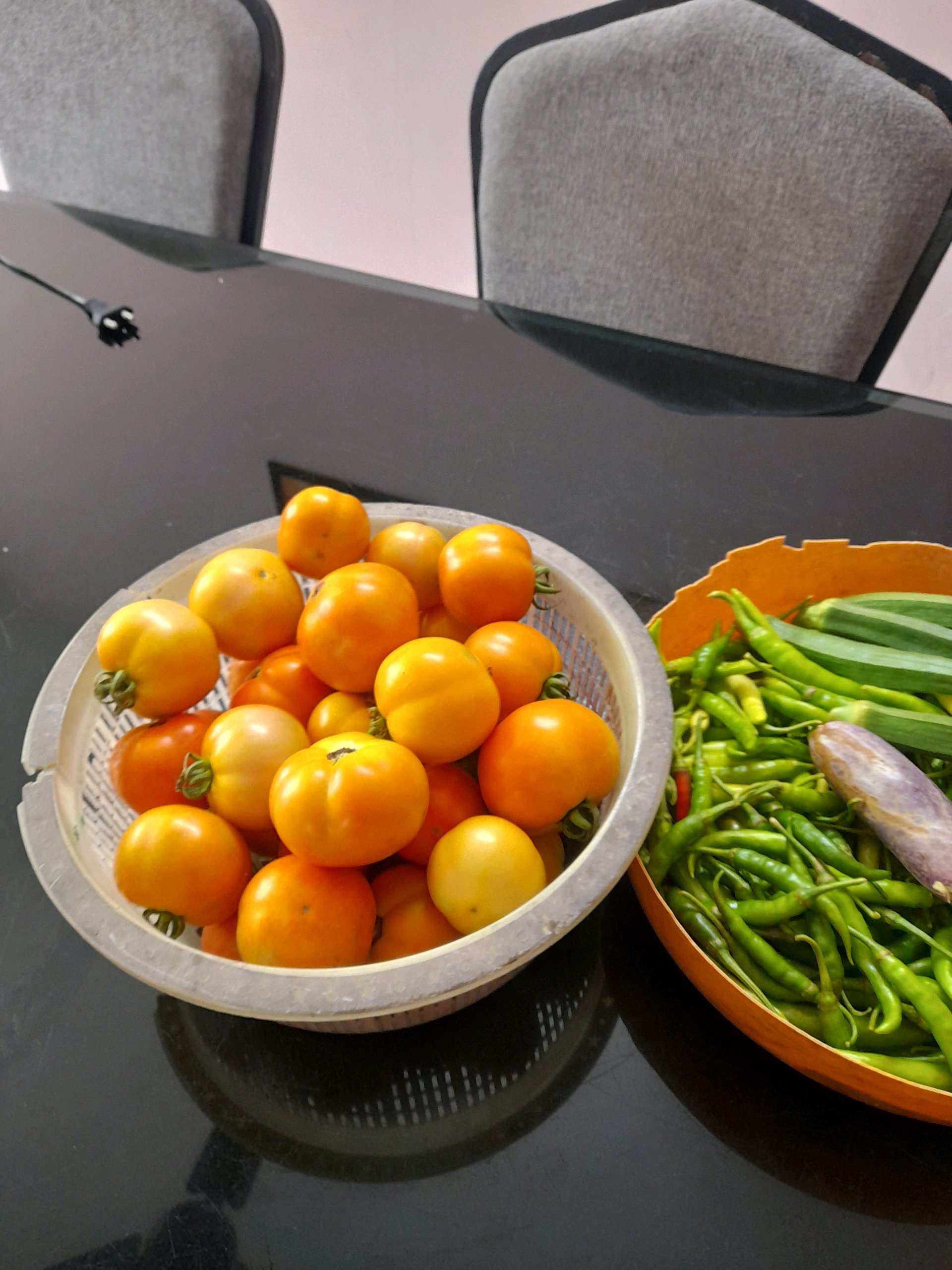 Fresh vegetables from home. Cultivated freshly without any pesticides. Tomato, brinjal, chilli, Ladies finger